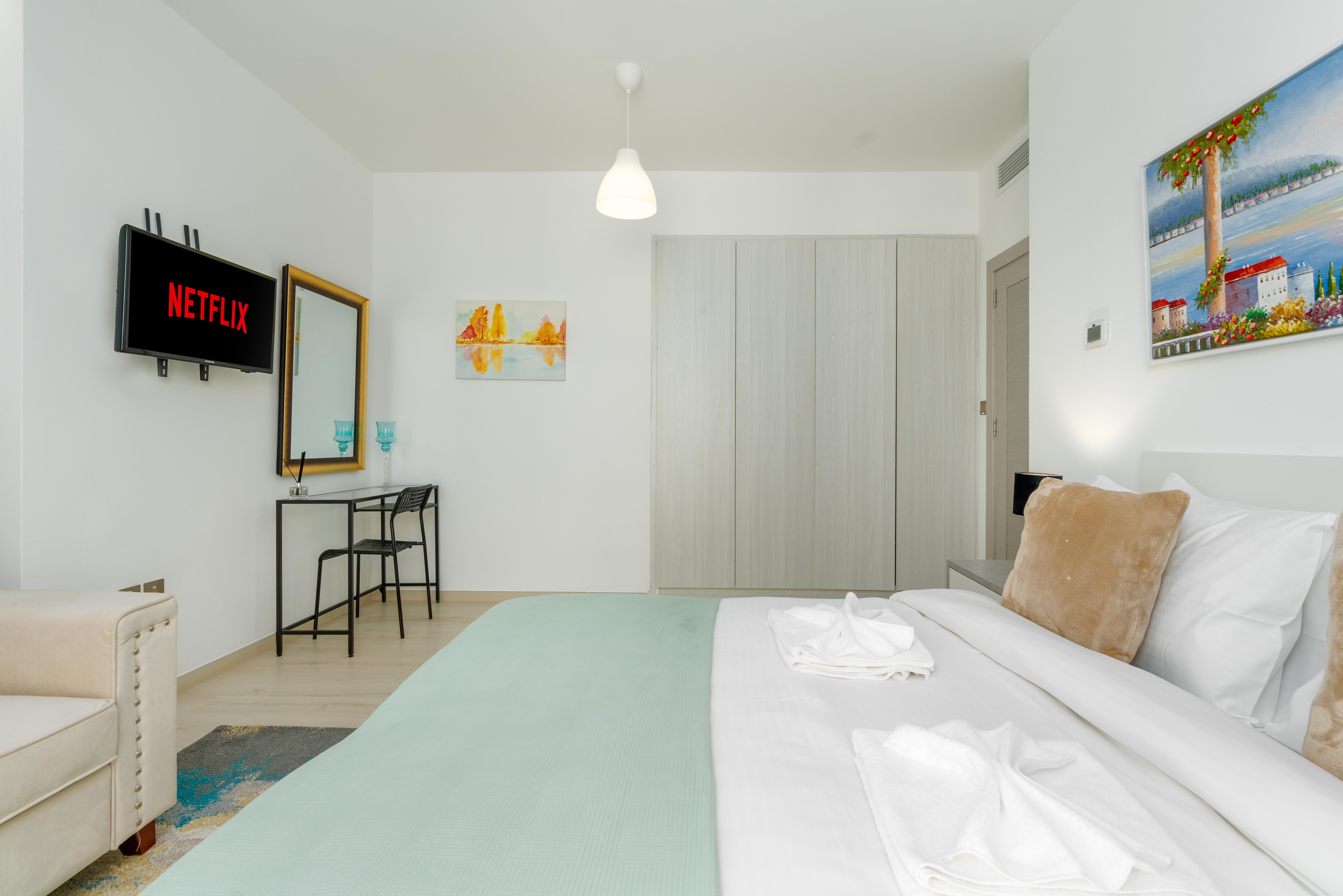 • All bedrooms have smart TVs.